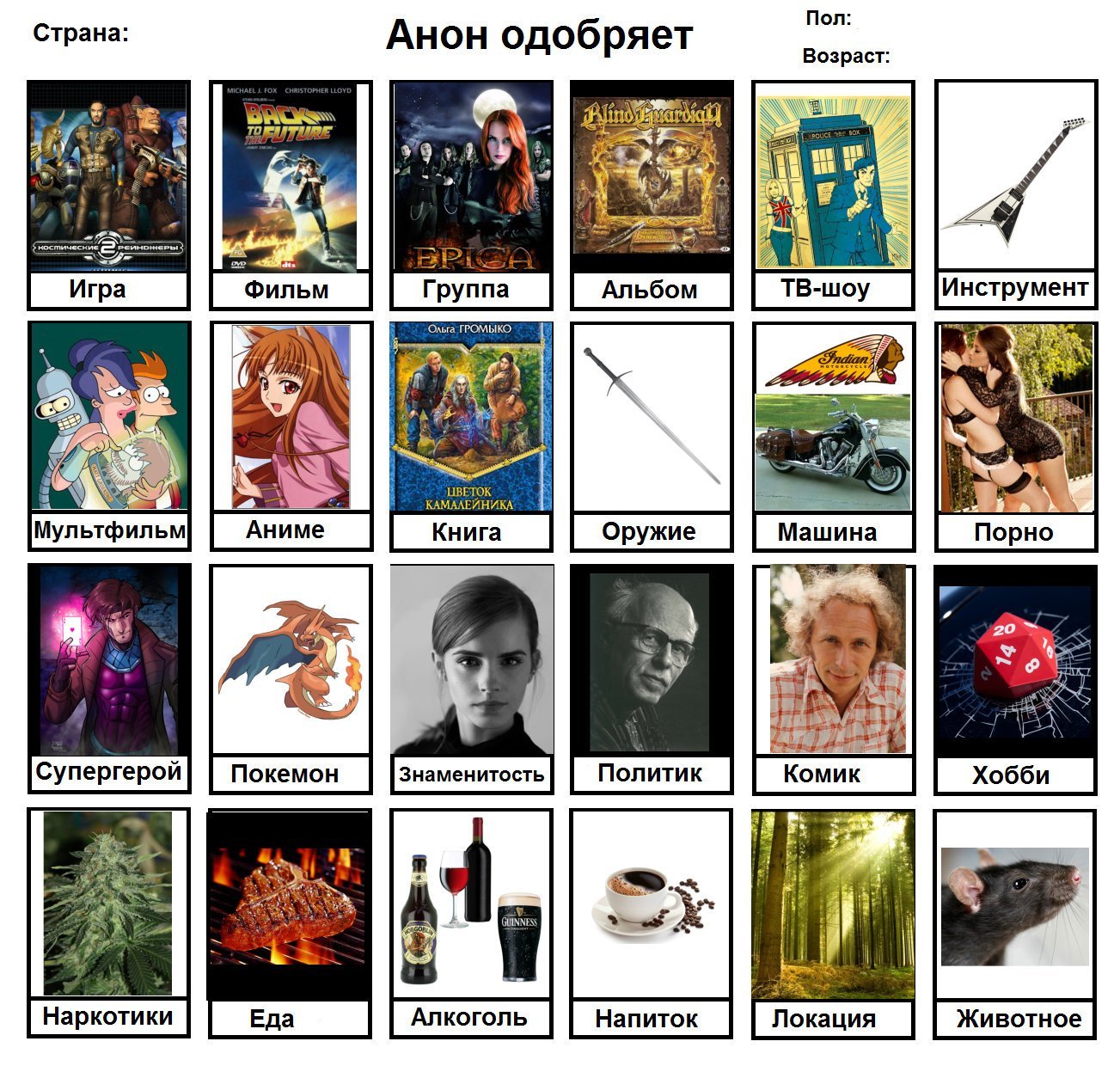 Пилим годный анкеты, опять же с пикчами, а не буквамии апсуждаем анона