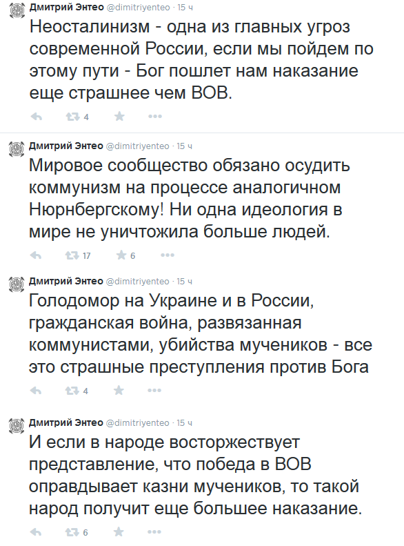 Я обожаю русских. Они всегда точно знают, кого нужно запретить. Я уже лет 20 надеюсь, что наконец кто-нибудь придет и запретит их. Как класс. Вместе со всей их тысячелетней историей жополизства начальству, кнута и нагайки, пьянства и вырождения, насилия и нечеловеческой злобы, вместе с каждым пидорасом, который знает кого точно нужно запретить. Увы, эти странные создания не вполне понимают, что для всего остального мира они выглядят как ничтожные уродцы. Они дергаются, ползают и кочевряжатся, надеясь, что их кто-нибудь заметит, а никто не замечает. Одного боюсь – этой сволочи хватит ума попытаться запретить человечество