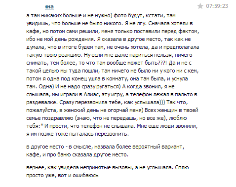 Как потом узнал, она на заре наших отношей пару-тройку раз мне изменяла. Такие дела лол.