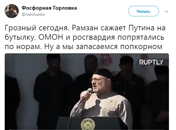 «Мьянма ... Кремль поддержал центральную власть, назвав мусульман «мятежниками». Кадыров поддержал мусульман и угрожает тем, кто поддерживает «шайтанов». Это первый, но не последний публичный конфликт отца и сына путинокадыровых. Продолжение следует», - написал он.