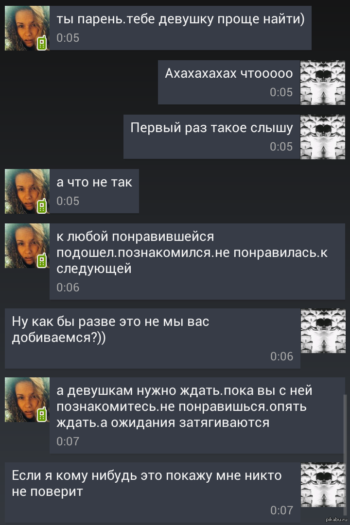 Хули мне ее узревать? Как только смекнул, что тням я нравлюсь больше ольфаджей-харизматиков - так и пошли у меня успехи. Пускай другие альфачат=харизмачат, мне дают и так.