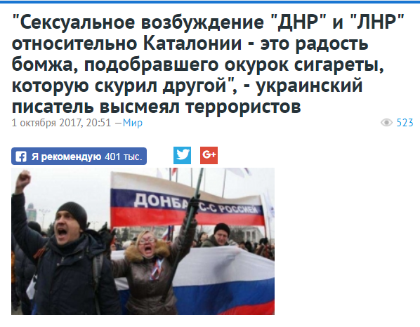 Каталония имеет право ибо народ такой есть и язык даже свой А Донбасс это всего лишь две области и народ там какой донбасяне?Хотя признаться язык свой есть это криминальная феня...