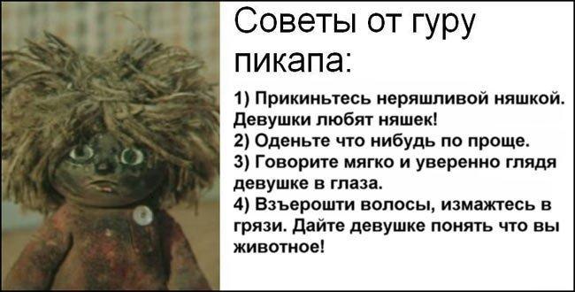 пикаперская хуета типа преодолей себя, подойти к 10, хоть одна ответит симпатией? отзеркаливание, якоря, визуалы и прочая нлпэшная фигня? учимся трепать языком ни о чем, поддерживаем увлечения собеседницы? стильный неряшливый вид, аккуратная прическа, чистая обувь?