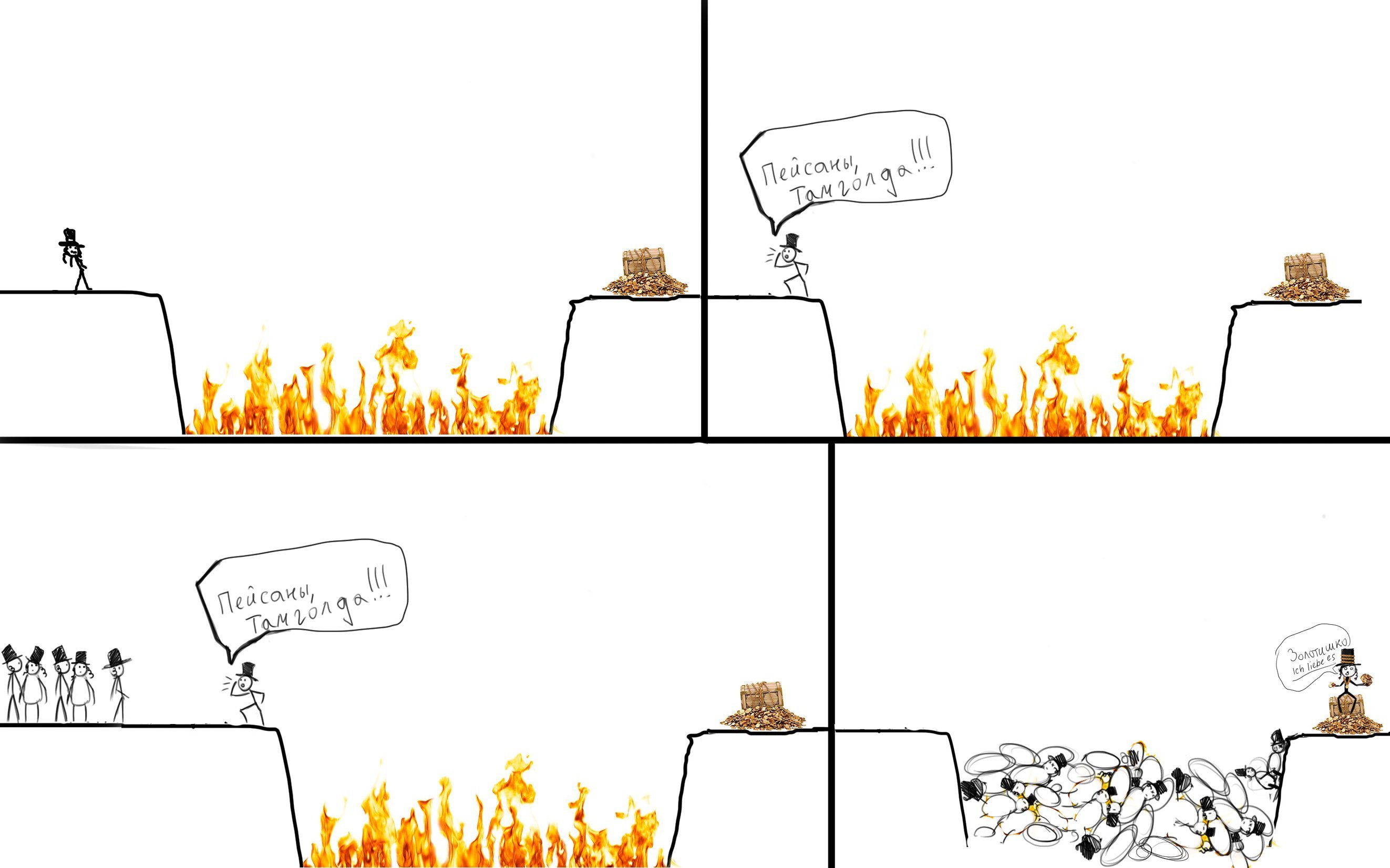 Моиша зовет Моисея, он раздвигает огонь, как море, моиша идет за золотом! Скила рисования не хватит это изобразить.