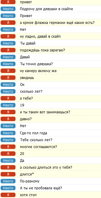 Только что зашел телка сразу кидает фотки голые, ну я такой типо ты че с харкача, троллишь меня? А он\она такая НЕ ПОНЯЛ, но я то все понял и дропнул это дело вот