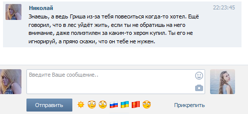 Ну блядь, на такие идиотские пустые вопросы я вообще никогда не отвечю, а она еще и с телефона заходила. Кого вообще должно ебать как у меня дела? Хуево у меня дела, и хуле? Завтра опять спросишь?