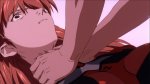 В начале комплиментации Синдзи душит воображаемую Аску, потому что она его послала нахер. А в конце он душит Аску потому что он хочет, чтобы она послала его нахер. Но вместо того чтобы послать его, она гладит его лицо, от чего Синдзи ломается и начинает реветь. Потому что в этот момент он осознаёт, что люди, кроме того что могут посылать друг друга нахер, могут ещё и любить. На это безудержное проявление эмоций лицезреет Аска, которой Синдзи немножко капнул на лицо, и, отсылаясь на сцену мастурбации из начала фильма, говорит "какая мерзость."