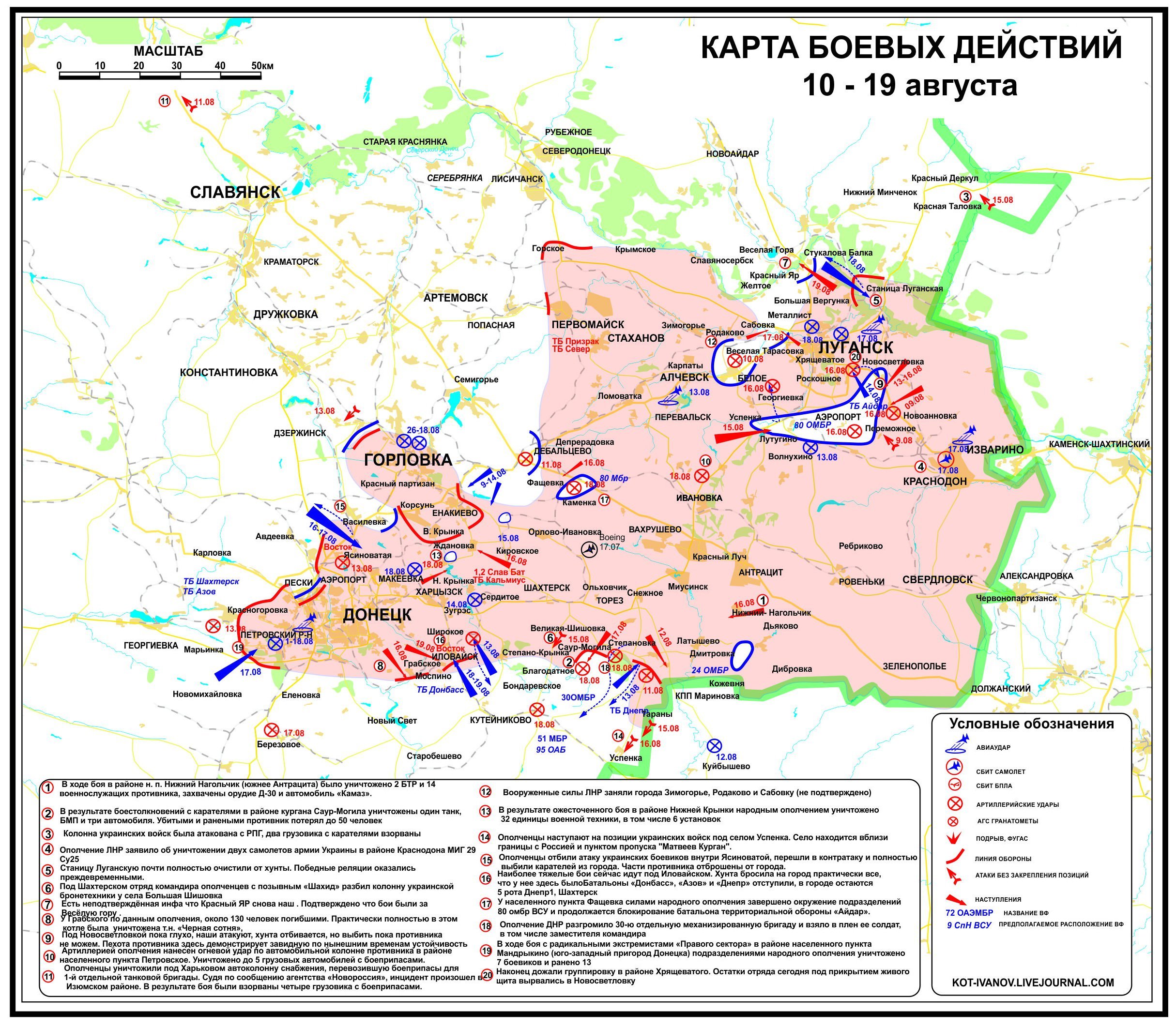 21 августа враг совершил опасный прорыв в глубину оборонительных порядков ополчения с Лутугинского плацдарма по трассе в направлении на Красный Луч, с одновременным ударом по второстепенной дороге на Иллирию, что создает потенциальную угрозу тылам Алчевско-Стахановской группы ополчения. Одновременно со стороны Белого враг атаковал Веселую Тарасовку, но был отбит.