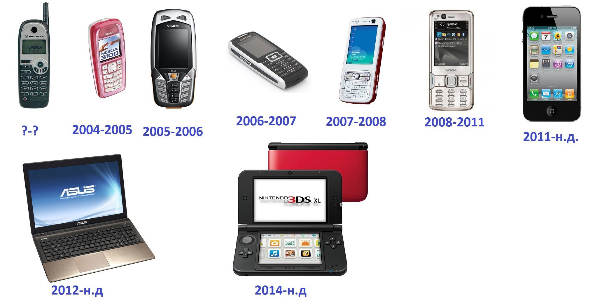 >>74149701 Эволюция моих телефонов с начала нулевых.