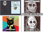 Также испытываю фобию перед отражающими поверхностями, в частности зеркалами. Когда смотрю на себя в зеркало, представляю как НЕХ появляется прямо за моей спиной или мое отражение превращается в НЕХ, хватает меня за руку, пытаясь втянуть в зазеркалье. Смотря на зеркало под углом, представляю, как кто-то по ту сторону подходит к нему и начинает вежливо стучаться, будто в дверь. И есть еще десятки подобных фобий.
