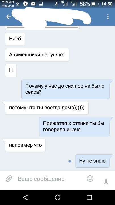 "Прижатая к стенке ты бы говорила иначе".