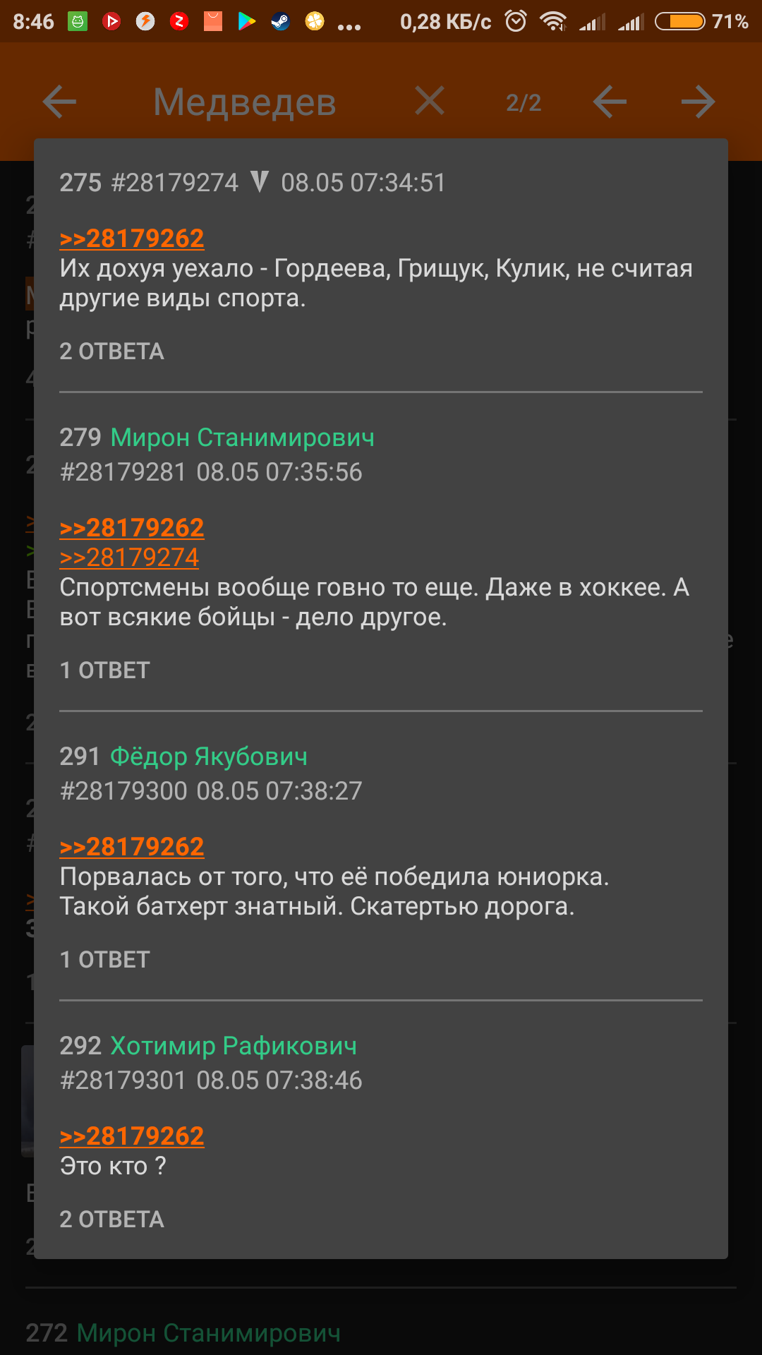 То что ты не радовался опиздюливанию казачеством для меня ничего не говорит, потому что ты тут же упоминаешь что другие-то радовались вон посмотри.