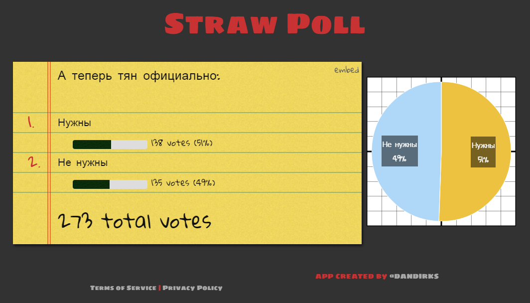 >>75302321 >Нет. Иди проси абу, чтоб опрос сделал. Тебе надо - ты иди проси. Для любого нормального человека результат, когда опрошено свыше 600 человек очевиден.
