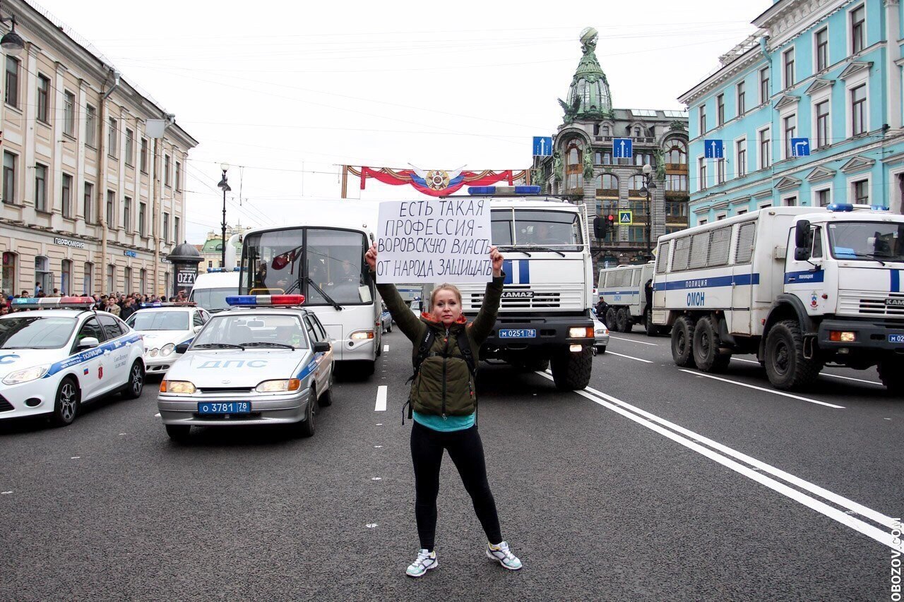 >Сегодня прошёл первый суд по делу об участии в акции 5 мая «Он нам не царь». Участник митинга Ярослав Тимофеев был приговорён к 80 часам обязательных работ по части 8 статьи 20.2 КоАП РФ.