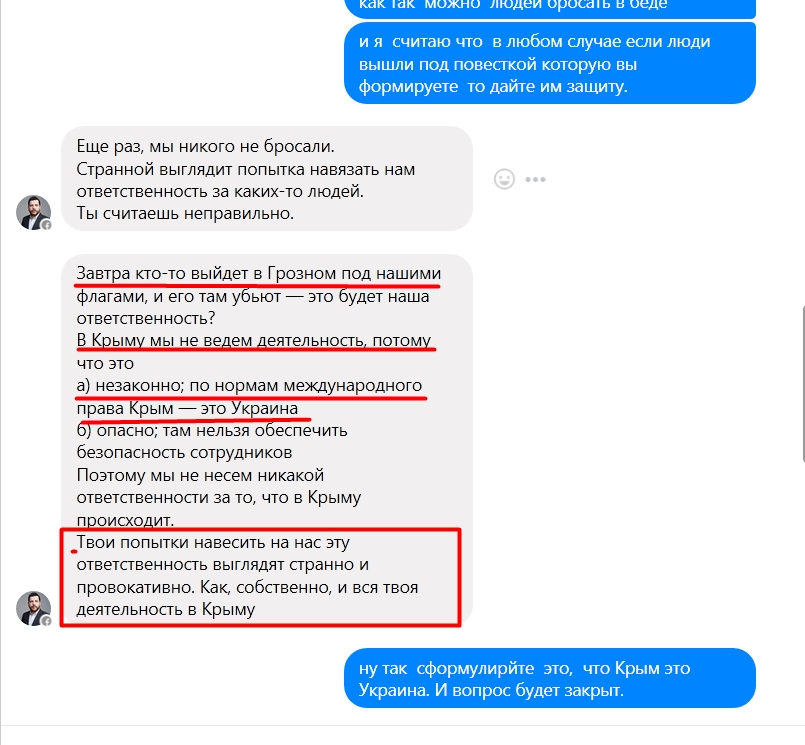 Проблема в том, что Сисян не считает крем российским. Для него это Украина и отсутсвие его штабов там ясно об этом свидетельствует. Я лично слышал, как Сисян называл полуостров «проблемой» (для будущего президента России проблемой должно быть государство-агрессор у границ, а не Крым). Редактор соцсетей-оп может сколько угодно объяснять, почему штабов нет, но мы знаем правду - Волков хуйни не скажет. Про страх Навального перед Кавказом и говорить не стоит.