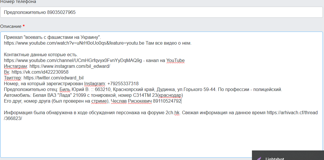 Узнали инфу о нем и адрес подъезда.
