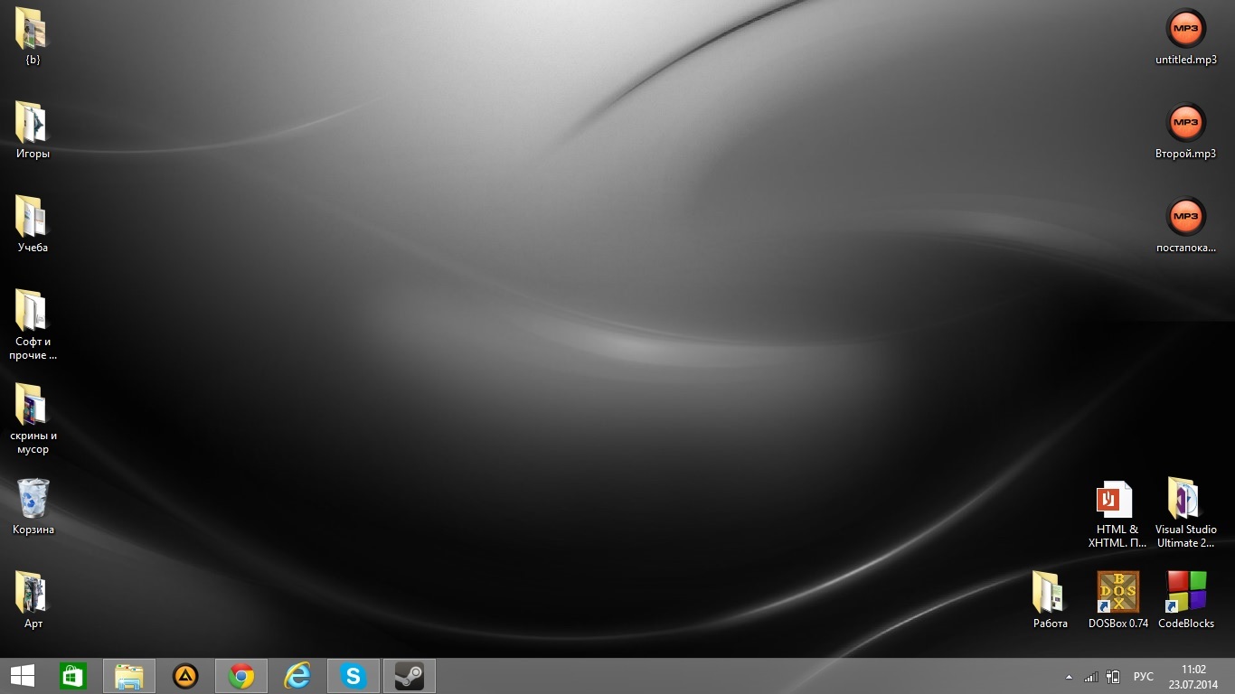 Всегда проигрывал с мудаков, которые чистят рабочий стол вилкой до того, чтобы кроме собственно картинки там вообще ничего не осталось. Рабочий стол это удобное информационное пространство, которое нужно и можно использовать, но эстетствующему долбоёбу нужно чтобы обязательно была только его любимая картинка, которая, к слову, в 90% случаев довольно непрезентабельно выглядит, если вообще не что-то, вызывающее блевотину наподобие пони, аниме или дотки.