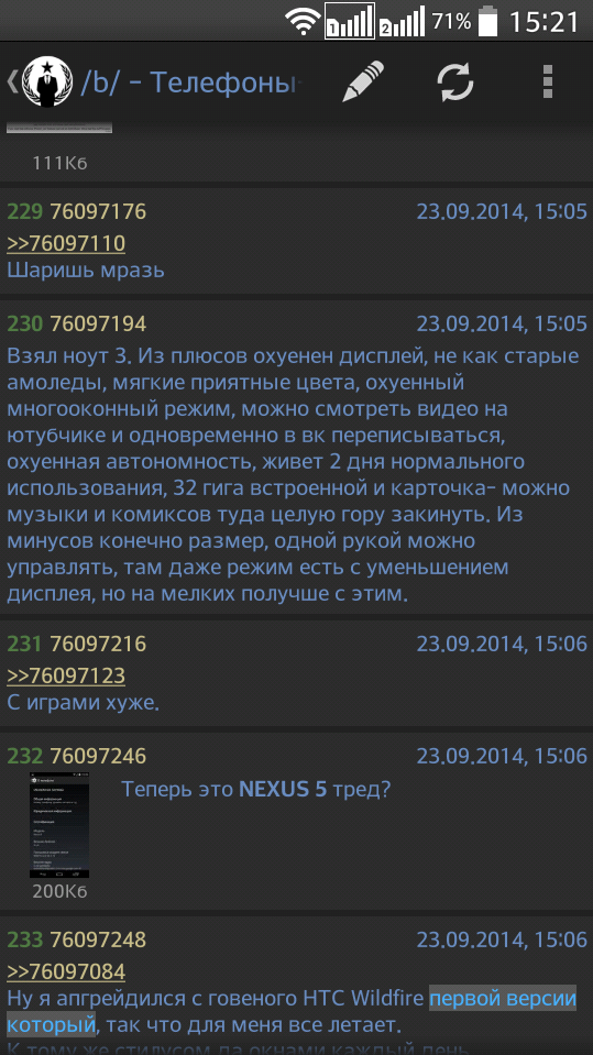 >>76093835 Поменял нокию 5800 на люмию 800 (20к) из за того что 5800 брал на старте продаж, экраны у серии ломались как и произашло у меня. На смену пожественному звуку 5800 пришлось взять тач 4 который служит до сих пор. Пол года назад приобрёл нексус 7 как андройд устройство да и вообще небольшой планшет для двачевания. Всё устраивает. По сути поддвачну нексус 5 или посоветую взять телефон на 8 шинофоне если не нужны на нём игори, а важна быстрая работа и более менее крепкая батарея.