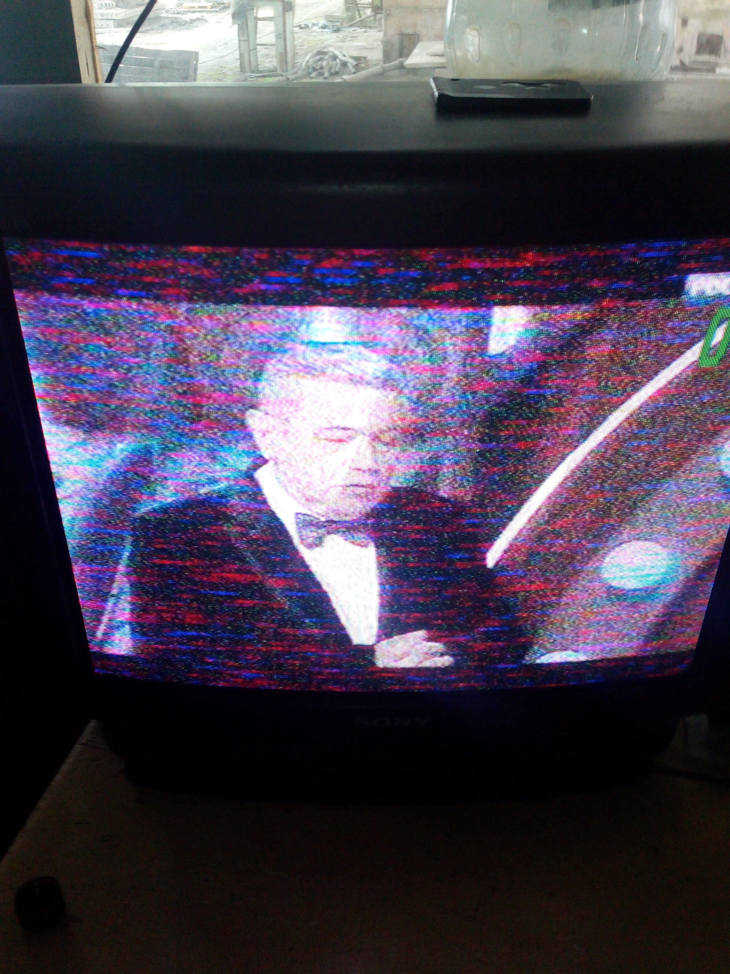 >>76141156 А разводы, муар? А полосы есть точно. Только быстро бегут. Это и есть наводка. Но не от крановой шины. Это цифровые помехи. А цветные искры это слабый полезный сигнал.