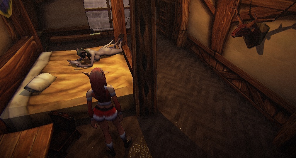 Эльфийки, дренейки и орки, сняв одежду, остаются эльфийками, дренейками и орками, за счет ушей, клыков, цвета кожи, тентаклей на бороде. То есть фетиш не испаряется по мере раздевания ебущихся.