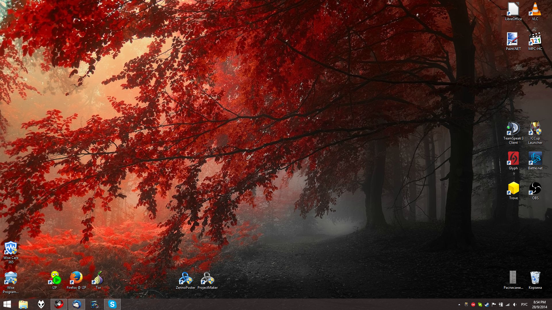 Дженерик говноед. Восьмёрка, ярлычки медиаплееров на рабочем столе, корзина, расписание.