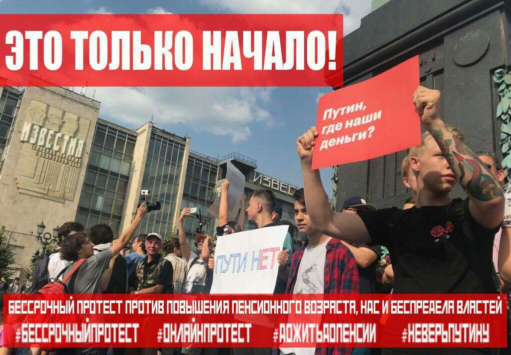 9 сентября начало бессрочного протеста против повышения пенсионного возраста, НДС, коррупции и Путина.