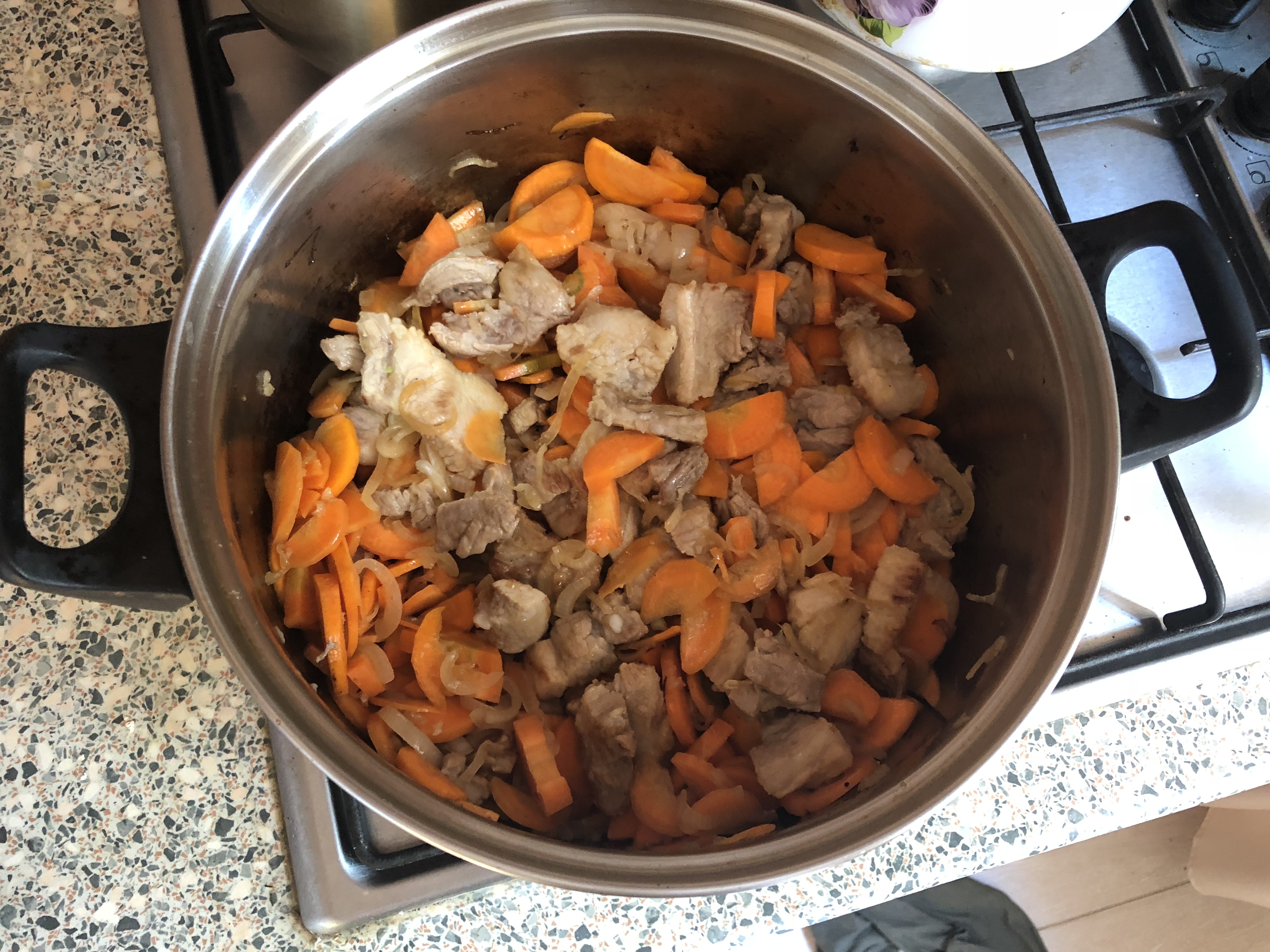 >>186330673 Говядину смолол, лук-помидоры порезал, чеснок раздавил - понеслась. По канону следовало бы все смешать, сделать мясо-овощной фарш и готовить так, но мы - пидорахи, мы луок серва обжарим до золотистого цвета.