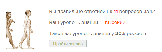 11 из 12. Проскроллил тред. Чаще всего про гены ошибались. Глупо же. И в школе проходят. И куча материала есть на эту тему.
