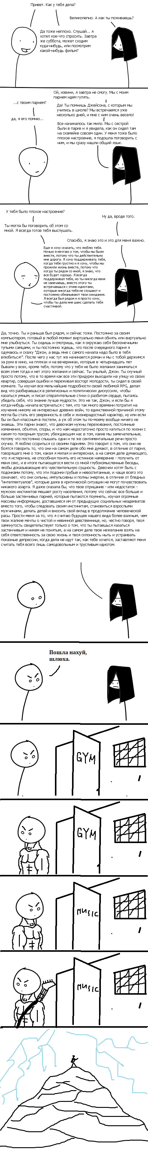 хиккую дома, есть тян, ненасытная, хочет ебаться все время, нахуй она нужна? А хуй знает! Лучше мариво ворлд на снес пройду. Да и дрочить проще и приятнее.