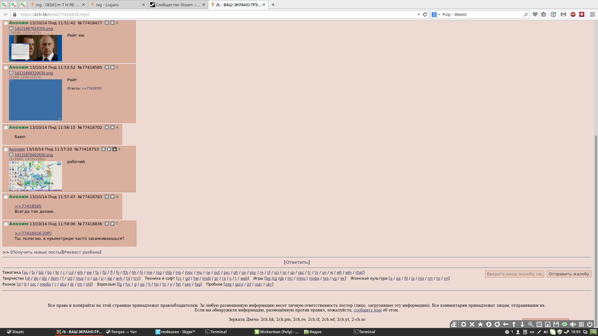 >>77442621 нахуя тебе столько ярлыков? корзину в нижний правый угол. Орижин с раб стола удалить нахуй, он у тебя внизу - в глаза долбишься? Фурифокс тоже вниз перенести. И все ярлыки нахуй снести, папку с тором тоже.