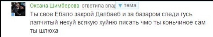 А по поводу выебать — это врядли. У меня никогда не было проблем с сексом и на дуру сестру у меня не стоит. Вобще на тупоголовых шлюх красивых не стоит, ибо пустышки, а в отношениях секс не главное.