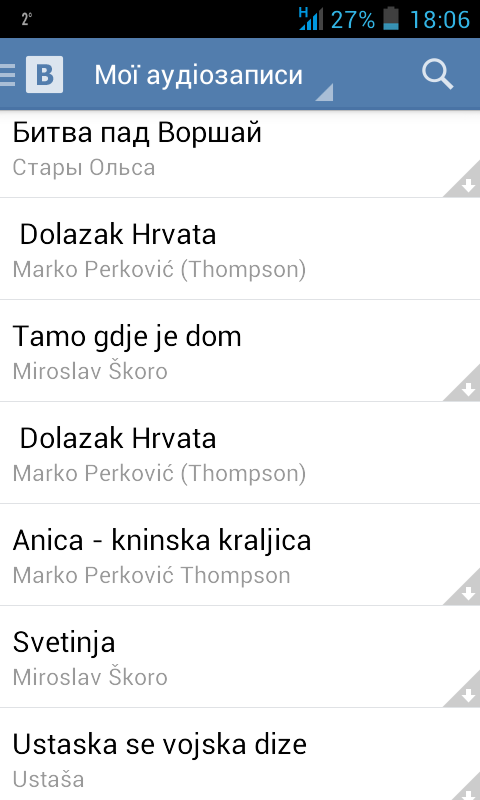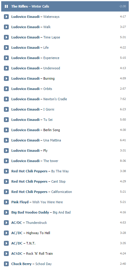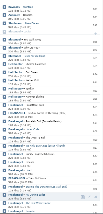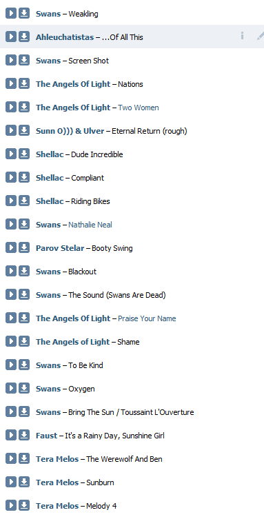 >>77828906 У меня в вк только единичные песенки, из разряда стыдно но слушаю. Слушать музыку там нормально нельзя. Можно охуеть что бы собрать дискографию целиком.