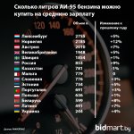 >Так, по словам кемеровчанина, при средней зарплате в России в десять тысяч рублей человек может себе позволить в среднем полтора бензина за рабочий час. В США же этот показатель равен 16 литрам, так как стоимость литра 92 бензина в стране равна 56 центам.