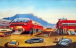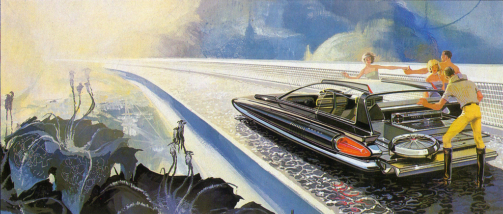 Ретрофутуризм, а также научная (и не очень) фантастика.