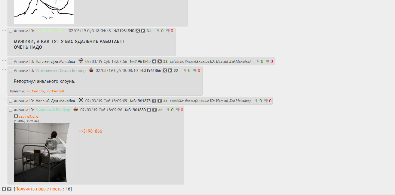 Аноним ID: Истеричный Остап Бендер  02/03/19 Суб 18:08:10 #27 №31961866