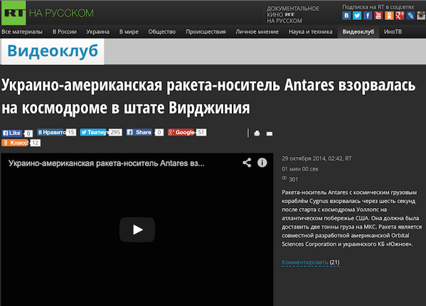 Первая ступень ракеты-носителя Antares, взорвавшейся при старте на космодроме в США с грузом для МКС, была разработана украинским КБ: http://ria.ru/space/20141029/1030730122.html