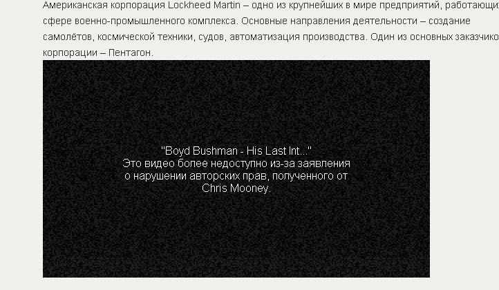 >>78679922 >Бывший научный сотрудник аэрокосмической корпорации Lockheed Martin Бойд Бушман заявил о существовании инопланетян. >Lockheed Martin И как только блохастые не вильнут, чтобы попилы на Ф-22 и Ф-35 прикрыть.
