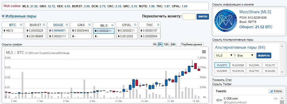 Чарты всех бирж: http://www.cryptocoincharts.info/