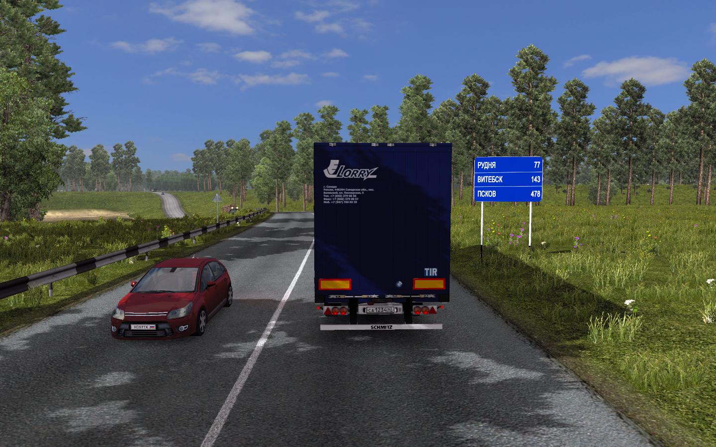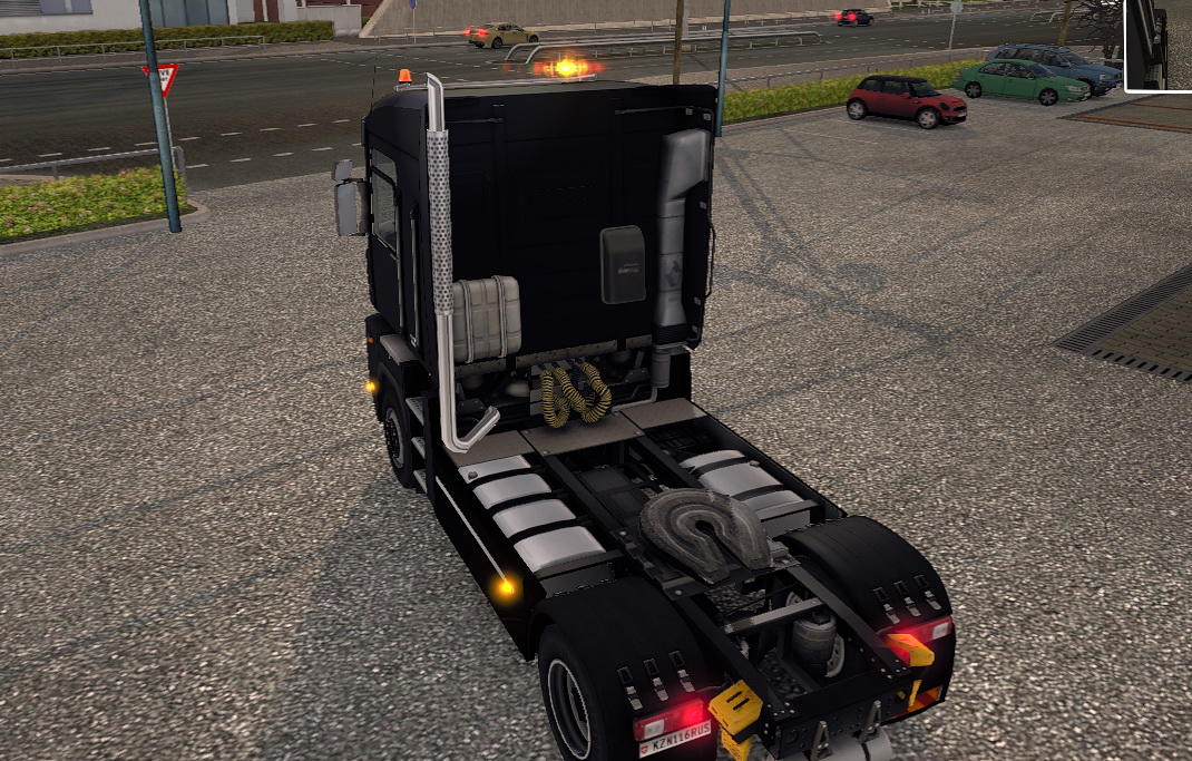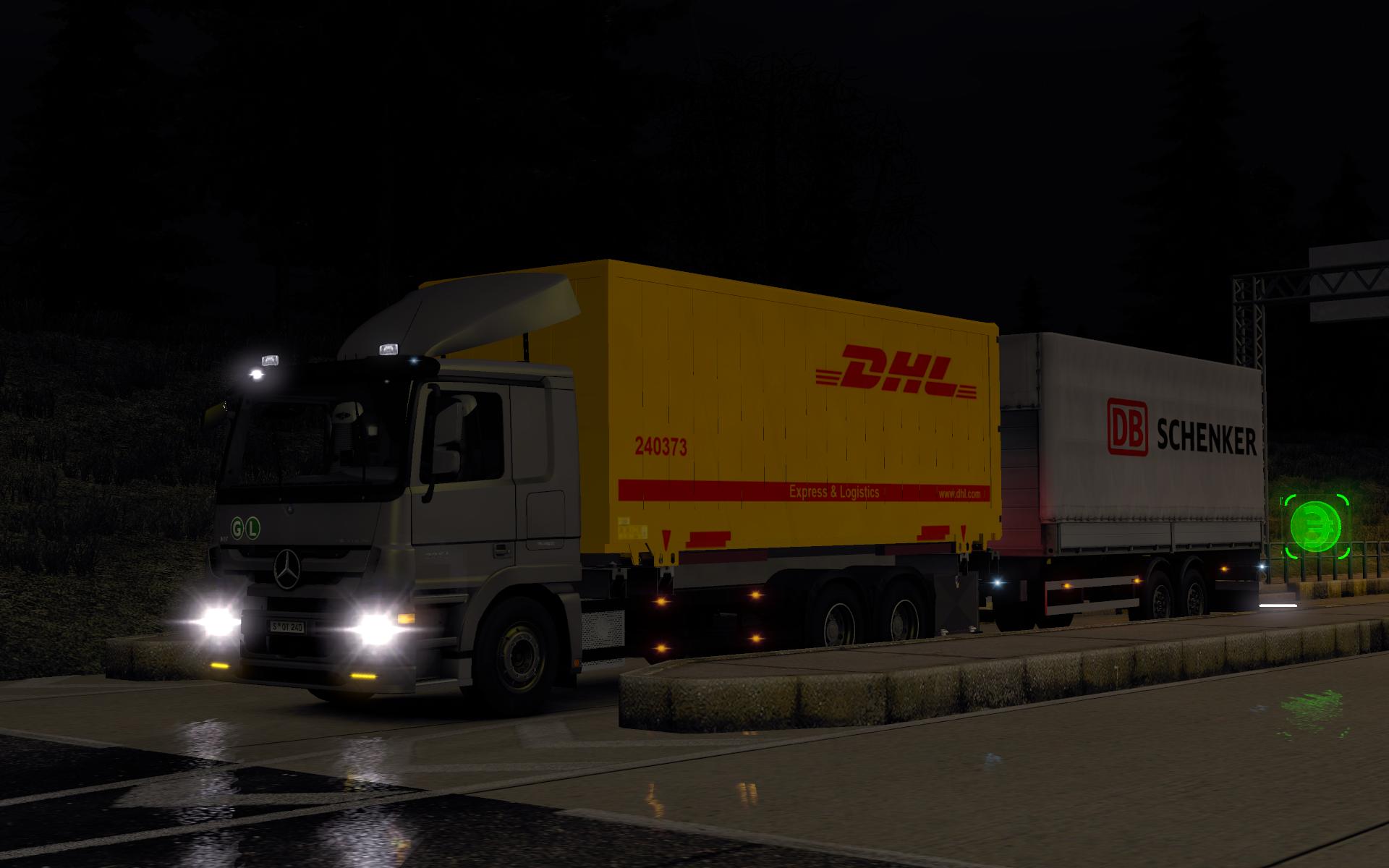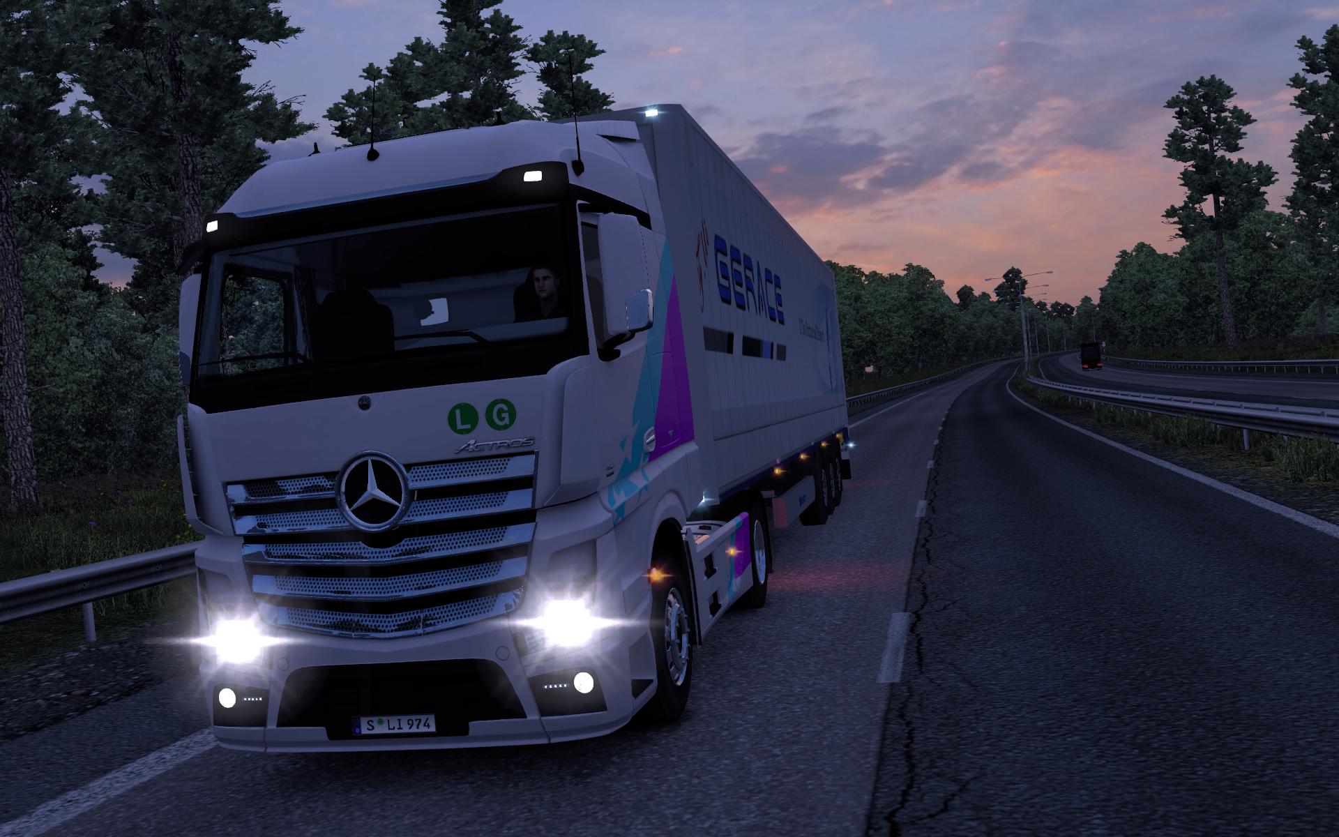 A:Время, положение, освещение, светофоры, фары грузовиков, движение колёс трейлера, таблички, пневмогудки, дальний свет, эксклюзивные покраски. Остальное в процессе.