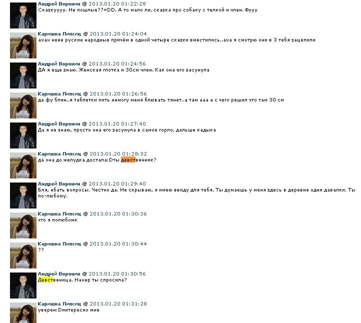 Ерохин (aka Андрей Воронин) забыл выйти из своего вкудахта. ОП первого треда подсуетился и слил всю его переписку с жирухой (aka Каришка Липсиц). ОП первого треда уже возможно отпиздюлен ибо крыса-кун, как всегда, на стрёме.