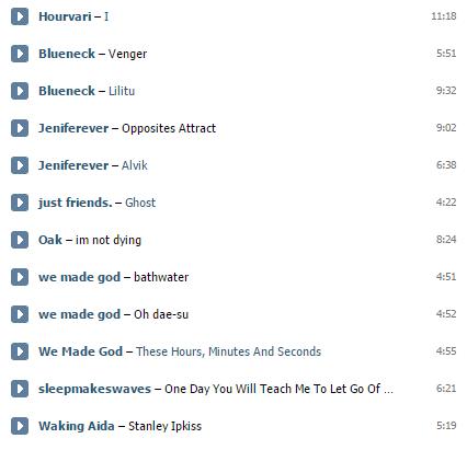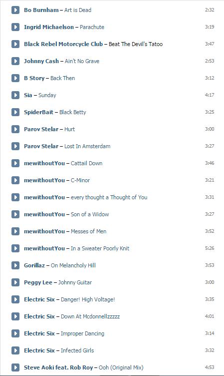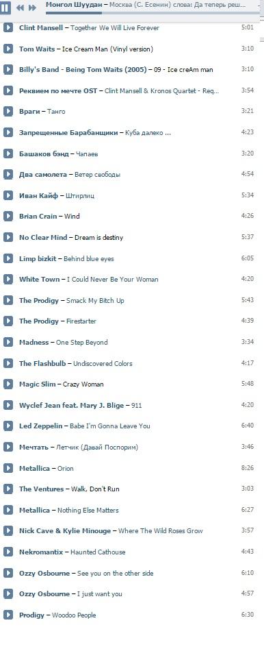 >>79146175 Лол, хотел заскринить, открыл уже аудиозаписи и понял, что стыдно. Там в основном русская абстракщина ну и пара рандомных песенок затесалась.