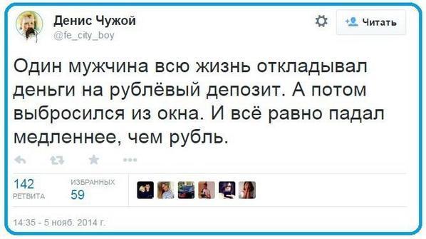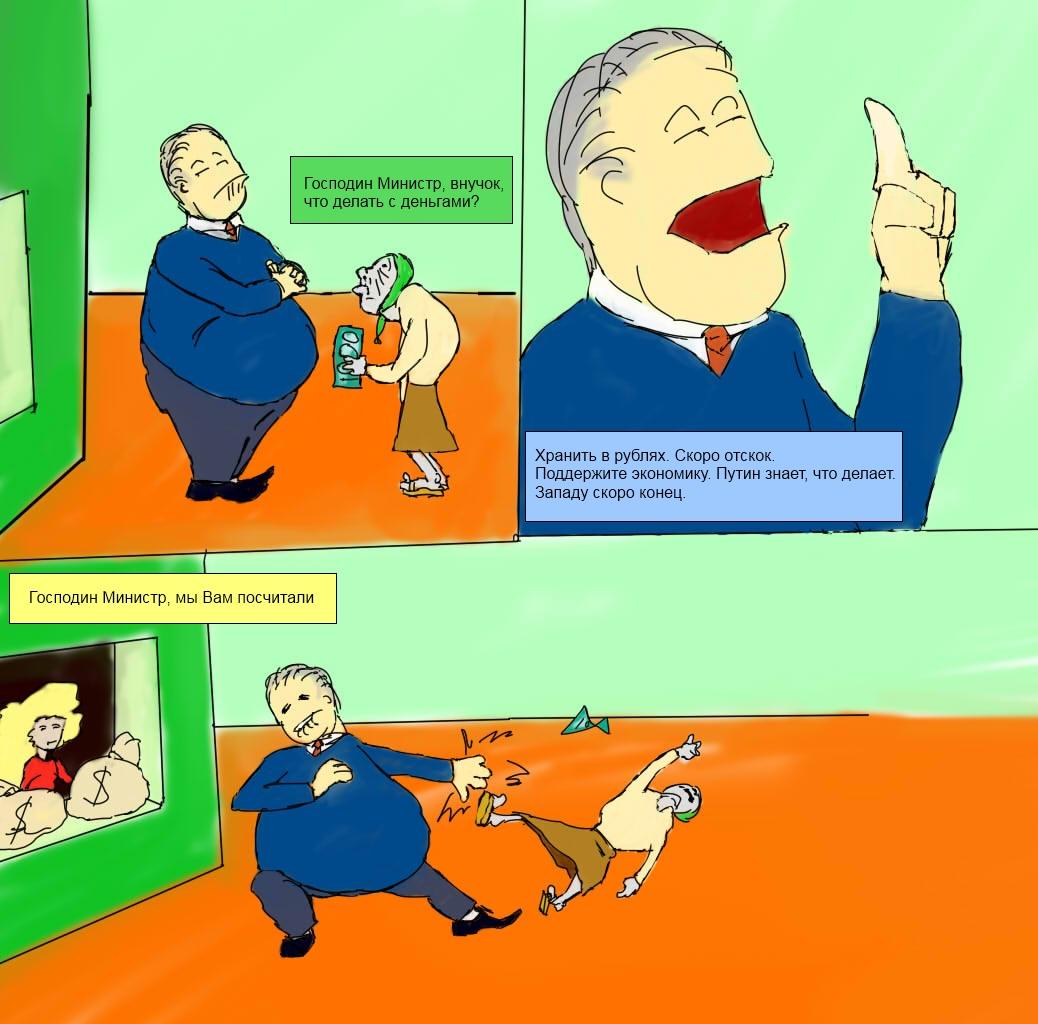 >И забудь про них А что через полгода будет? Рубль настолько скатится в сраное говно, что я, ээээ, не знаю как правильно, ну вроде как в товарном эквиваленте у меня сумма будет примерно той же, что и до обмена? А почему именно 3 к 1?