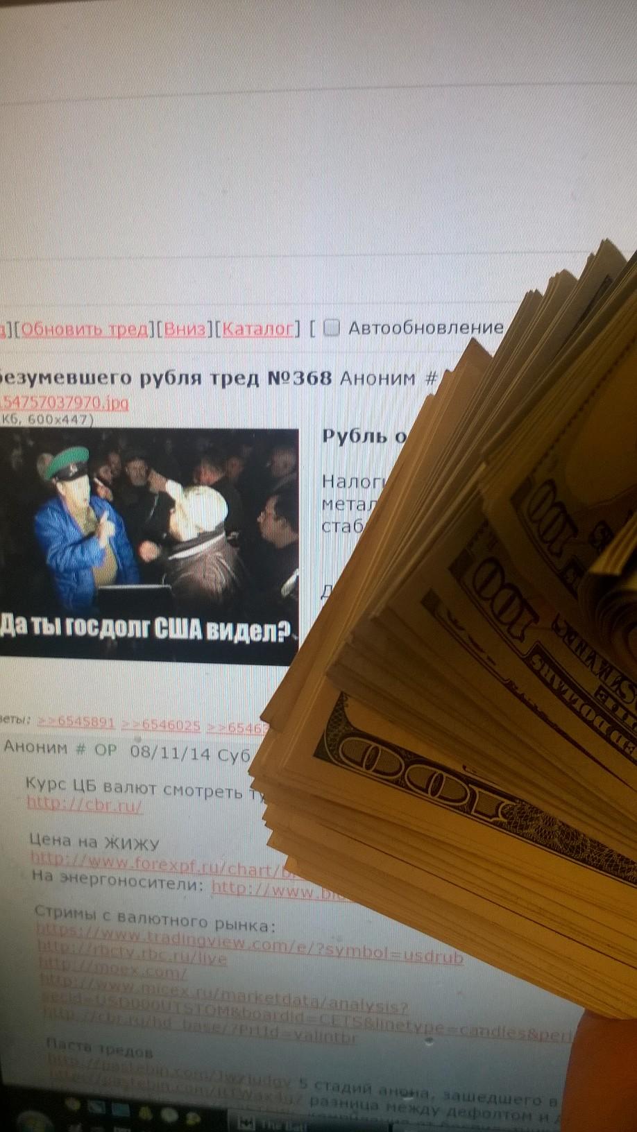 >>6548302 Ну вот знаешь ли, первую свою заначку в наличном долларе я сделал еще в 97 году. И знаешь, чего-то не прогадал. Остальные коллеги выцарапывали свои кровные из банков по курсу 7.5 в момент после дефолта, а мне было норм.