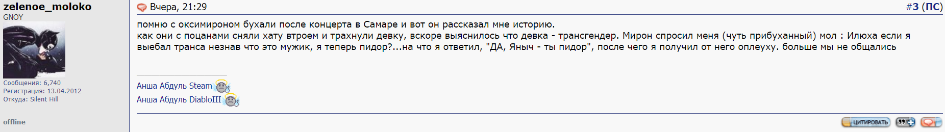 Хватит обманывать. Зашла на дайри найти своих единомышлениц жирух что бы на Славуню подрочить, а они там на Мирошу дрочат. Трахуют его сладкую дырочку всякими Микси. Там уже давно засилье оксижирух. Так что здесь, с вами остаюсь