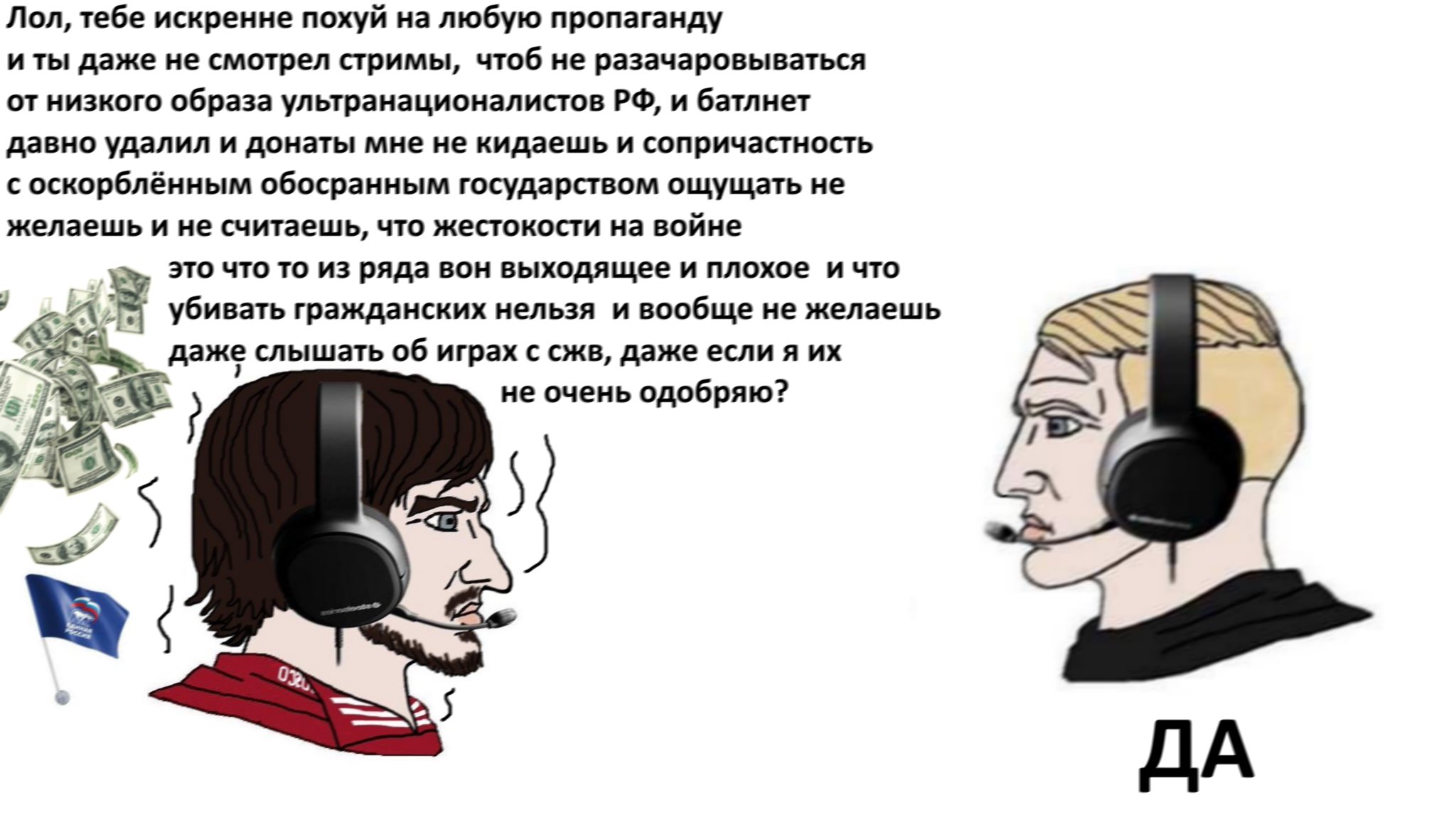 Обожаю когда зумеры делят все на чёрное и белое, типа не нравится, когда русских смешивают с грязью в видеоиграх - ватник. Или наоборот, кайфуешь, когда солдат твоей нации показывают зверьми и нацистами в 21 веке - либерашка/какол.