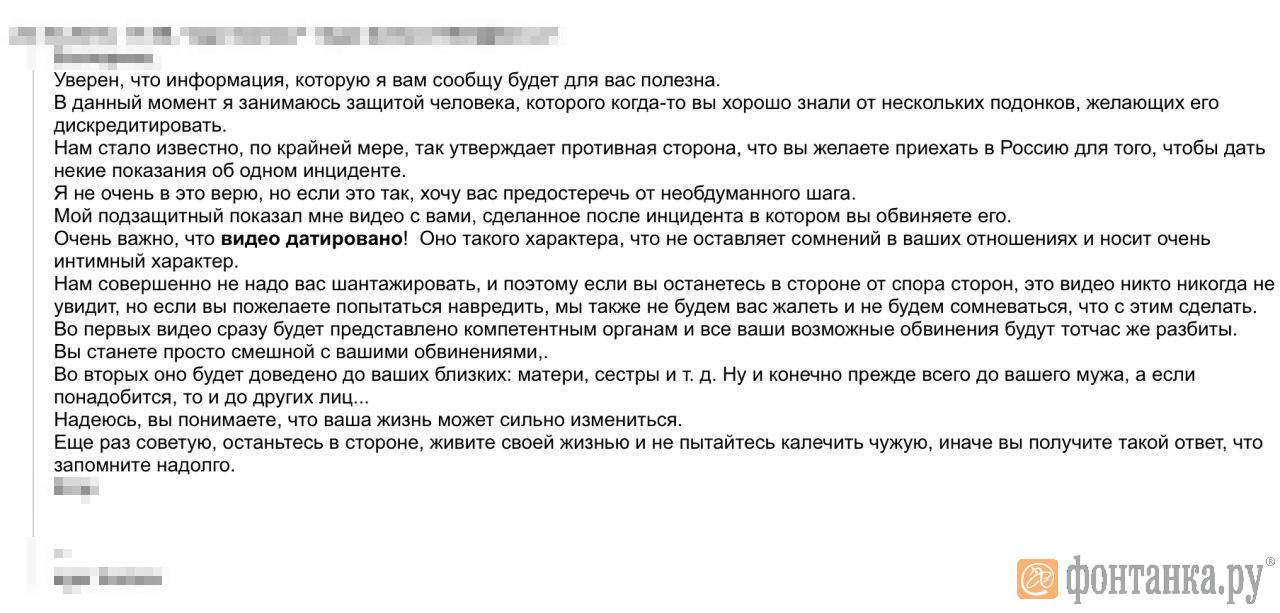 - Он позже уже рассказал, что заплатил какой-то компании, они вскрыли все мои соцсети, электронную почту, узнали все номера из телефонной книжки. Даже упомянул, что заплатил за это 40 тысяч. Он звонил моим друзьям, моей научной руководительнице, говорил про меня гадости. Когда узнал, что написала заявление, умолял его забрать. Говорил, что у него старенькие родители и они такого не переживут, и что если они умрут, то их кровь будет на моих руках.