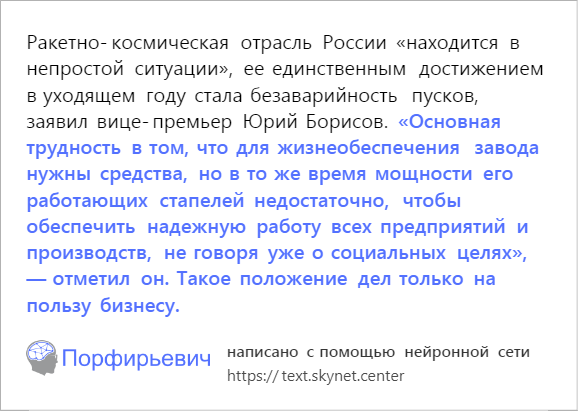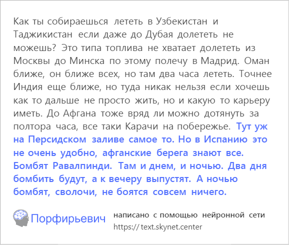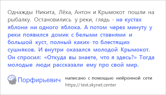 >>35437389 Рано или поздно книги полностью будут писать сети. Можно легко ставить цензуру на фразы для разделения по возрастам. Затем надо создать нейронку которая будет оцифровывать написаное в 3д видео. И вуаля, бесконечная потребность человечества в контенте успешно удовлетворена.