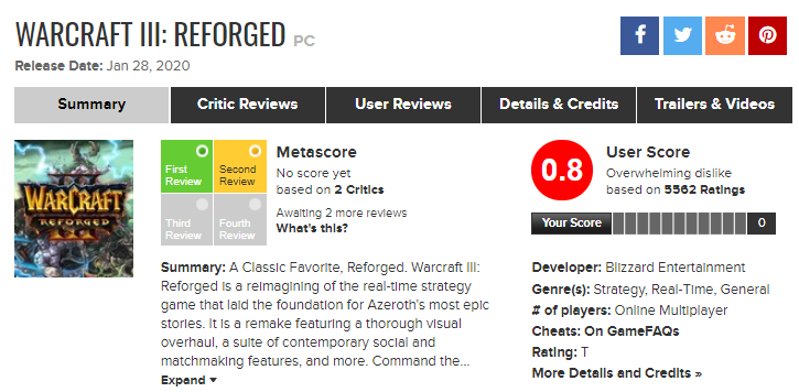 >>212691394 Первы обзор, как я понимаю, оценивает игру в целом, а не только качество ремэйка. Типа сферический варкрафт в вакууме. И даёт объективную оценку, так как варкрафт всё ещё хорошая игра, хоть и попорченная.