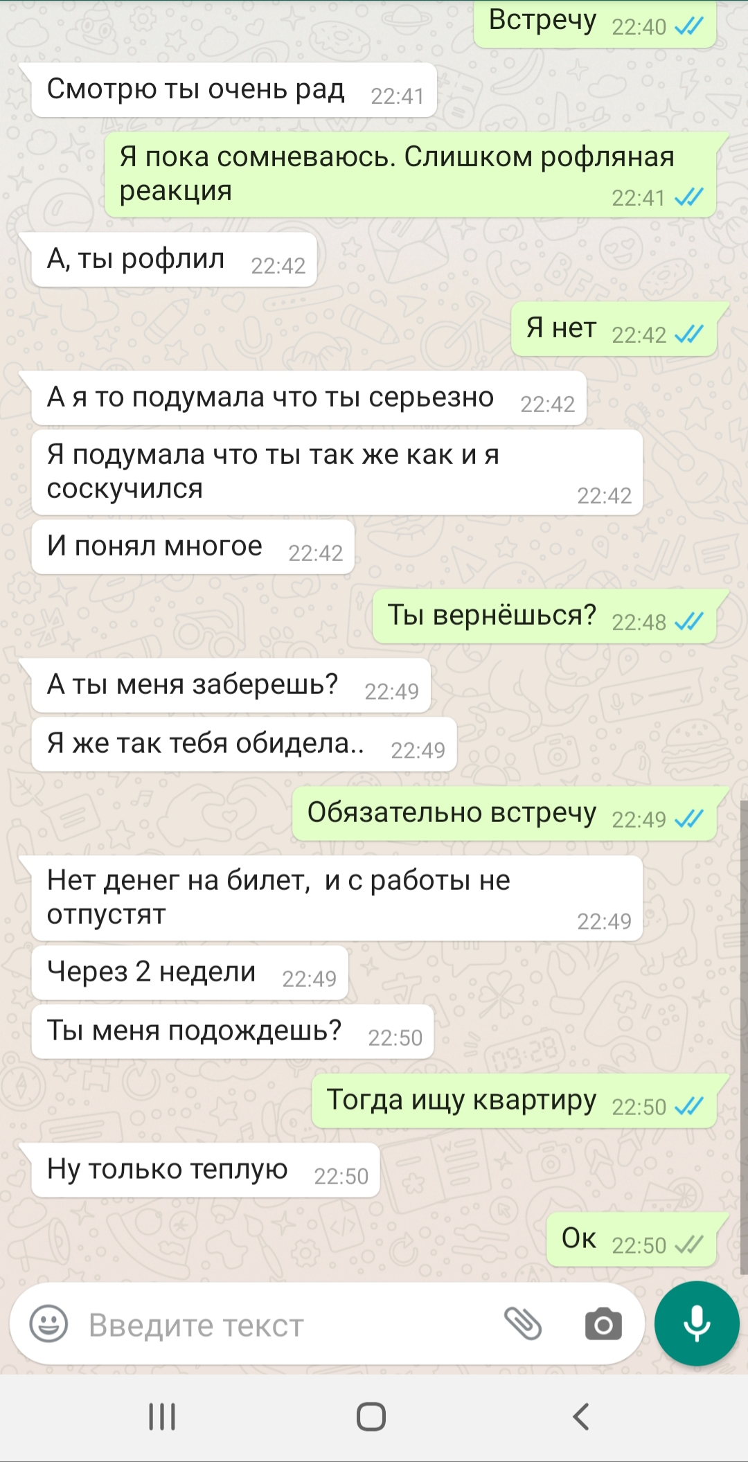 была в сети 20 минут назад, хотя написал 2 часа назад, такое чувство, что намерено не хотела отвечать, я как будто прокаженных для нее, хотя все было хорошо Я так понимаю это "нет", ну ладно Пойду спать, Аноны, взаимной любви Вам и будьте счастливы, держу за всех вас кулачки Не расстраивайтесь :)хотя я сам сейчас убит если честно, обидно на самом деле Всем спокойной ночи! Если вдруг взбрядет написать или узнать исход все таки то, @nordvinterogon