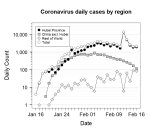 The Lancet опубликовали статью с уточнёнными данными (!). Удвоение количества зараженных раз в 4-6 дней. Пик эпидемии в Китае в середине апреля. Китай и Ухань следуют одной модели с лагом в 2 недели: